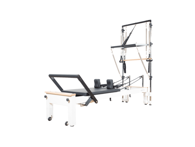 This reformer takes the design of the C8-Pro and repackages it in a fresh design with a focus on clean flowing lines, achieved by bringing the standing platform and rope risers within the frame. The C8-S Pro is particularly aimed at the group reformer studio and more style-oriented home studio.