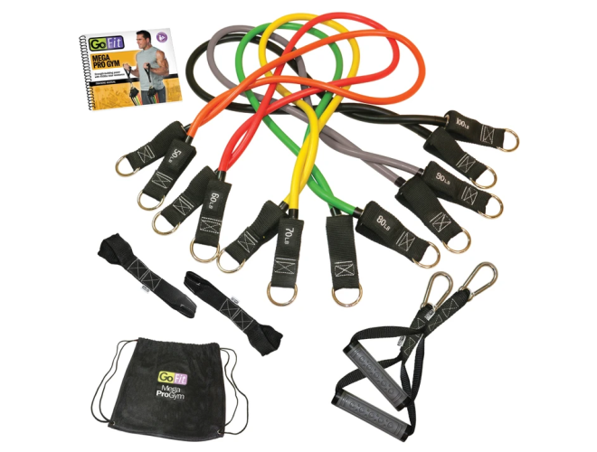 Get mega strength-training with the NEW GoFit Mega ProGym. This ultra-portable, complete home gym offers up to 450lbs of total resistance, so you can train anywhere, anytime and get real results. With GoFit's six heaviest Power Tubes, accessories and world class instruction, the Mega ProGym's total-body workout is all you need to go big at home or on the go. Train. Recover. Repeat. GoFit.