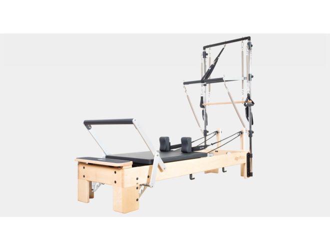 The Align-Pilates M8-Pro Pilates Reformer is crafted from extremely durable North American maple and designed to marry classical styling with contemporary functionality.