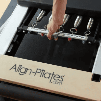 The Rapid Change RC Spring bar is the new patent pending Spring bar from Align-Pilates. A traditional spring bar is used in conjunction with a separate carriage stopped and this can take up to 12 actions to change on a 5 spring reformer. The RC spring bar features integral carriage stoppers and is adjusted with the springs attached, it can be moved with one hand in a single action saving 3 to 11 additional actions every time you move the spring bar. The RC spring bar is a game changer in group reformer classes and it also prevents incorrect carriage stopper positions and the possibility of leaving your springs in a stressed position, which will reduce their life and performance. Watch video here!