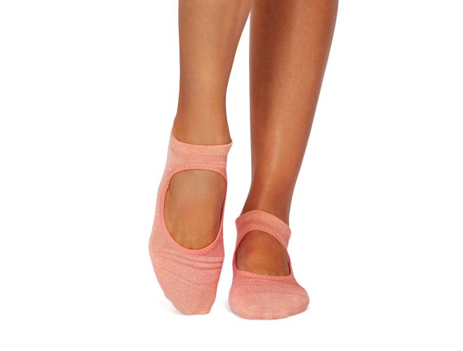 Meet Emma, Chey's sister. She is the sweet mary jane silhouette you already love but with an added heel tab to protect your Achilles at the barre. Tavi's stellar grip sock pattern safely moves you through your barre, Pilates, and yoga classes. Express the heart of Tavi with Function that Flows into Fashion. Technical features: