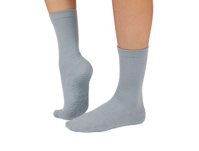 Push your practice with advanced grip technology. The Kai Tec Grip Sock features moisture-wicking TAVI Tec yarn, dual-surface stability grips, and breathable mesh jacquard in a secure crew height design.