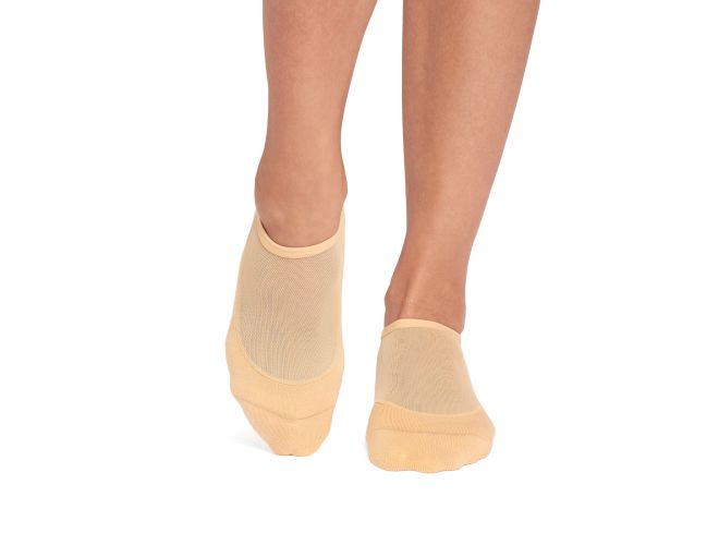 Stay cool in the Maddie grip sock with chic mesh adorned with just a touch of sparkle. Her low profile design hugs just below the ankle, heel tab in place to protect Achilles, and Tavi's stellar grip sock pattern safely moves you through barre, Pilates and yoga classes.