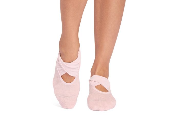 Penny Grip Socks add a fun flair with twisted straps across the foot for a one-of-a-kind look. Her low profile hugs the foot just below the ankle while Tavi’s stellar grip pattern safely moves you through your barre, Pilates and yoga classes. Express the heart of Tavi with Function that Flows into Fashion.