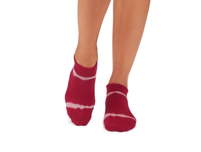 Savvy gives your sporty side a touch of sensual style. Her low rise design hugs below the ankle while Tavi's stellar grip sock pattern safely moves you through your barre, Pilates, and yoga classes. Express the heart of Tavi with Function that Flows into Fashion.